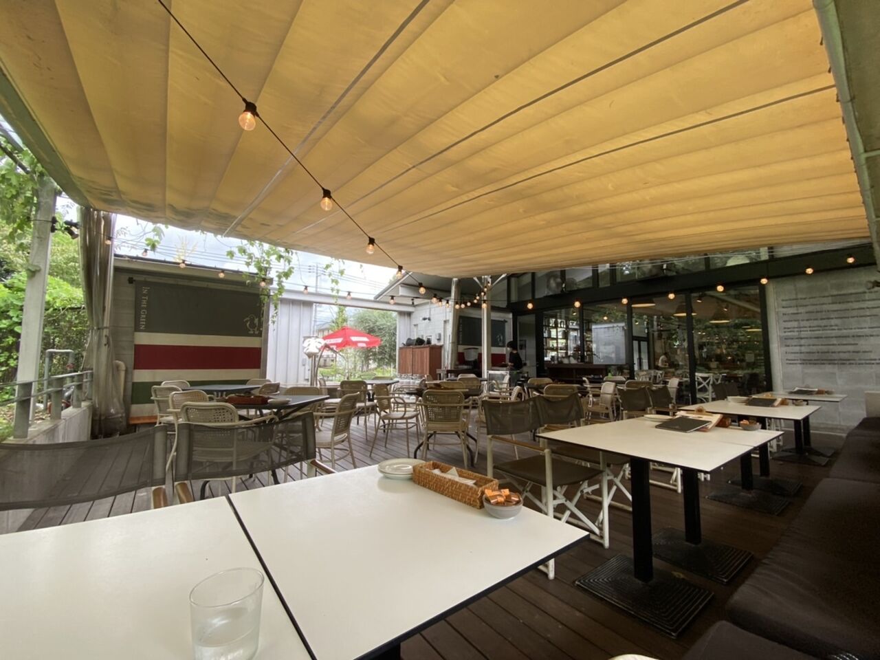 京都北山の植物園北側にあるイタリアンカフェレストラン【インザグリーン】にペット連れでも楽しめるテラス席がありました。