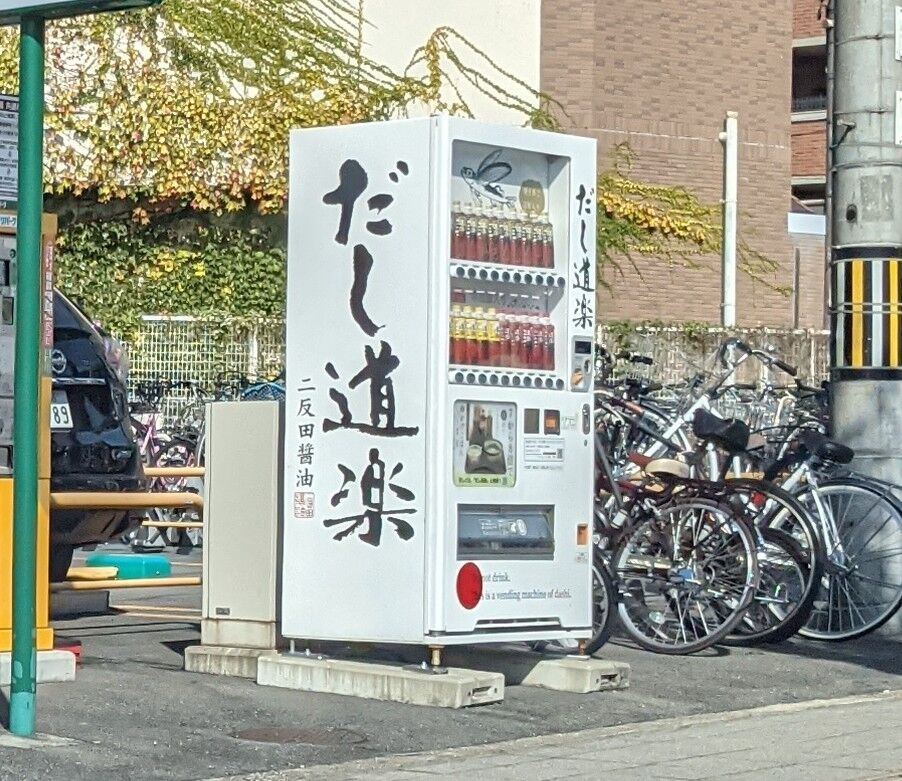 ・だし専用の自動販売機。広島県発祥で2007年より自動販売機での販売を開始したようです。更新日現在、京都府に5箇所設置されています。