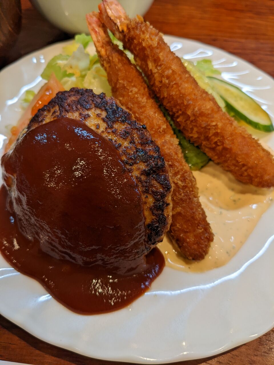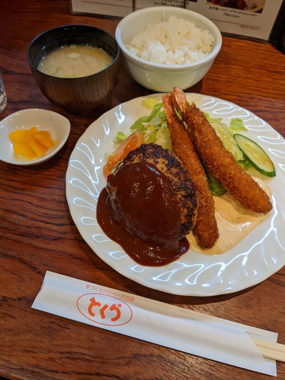 ハンバーグとエビフライのランチ 1210円