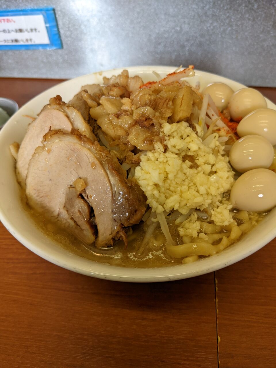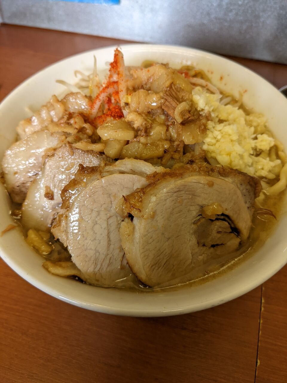 ・塩味や油分でやられるほど極端な味付けではなかったので二郎系ラーメン初めてだという方にもおすすめできると思います。二郎系ラーメンはニンニク入れた方がおいしいと思いますので、仕事中はちょっと厳しいかもしれません。半日はニンニク臭いと思います。