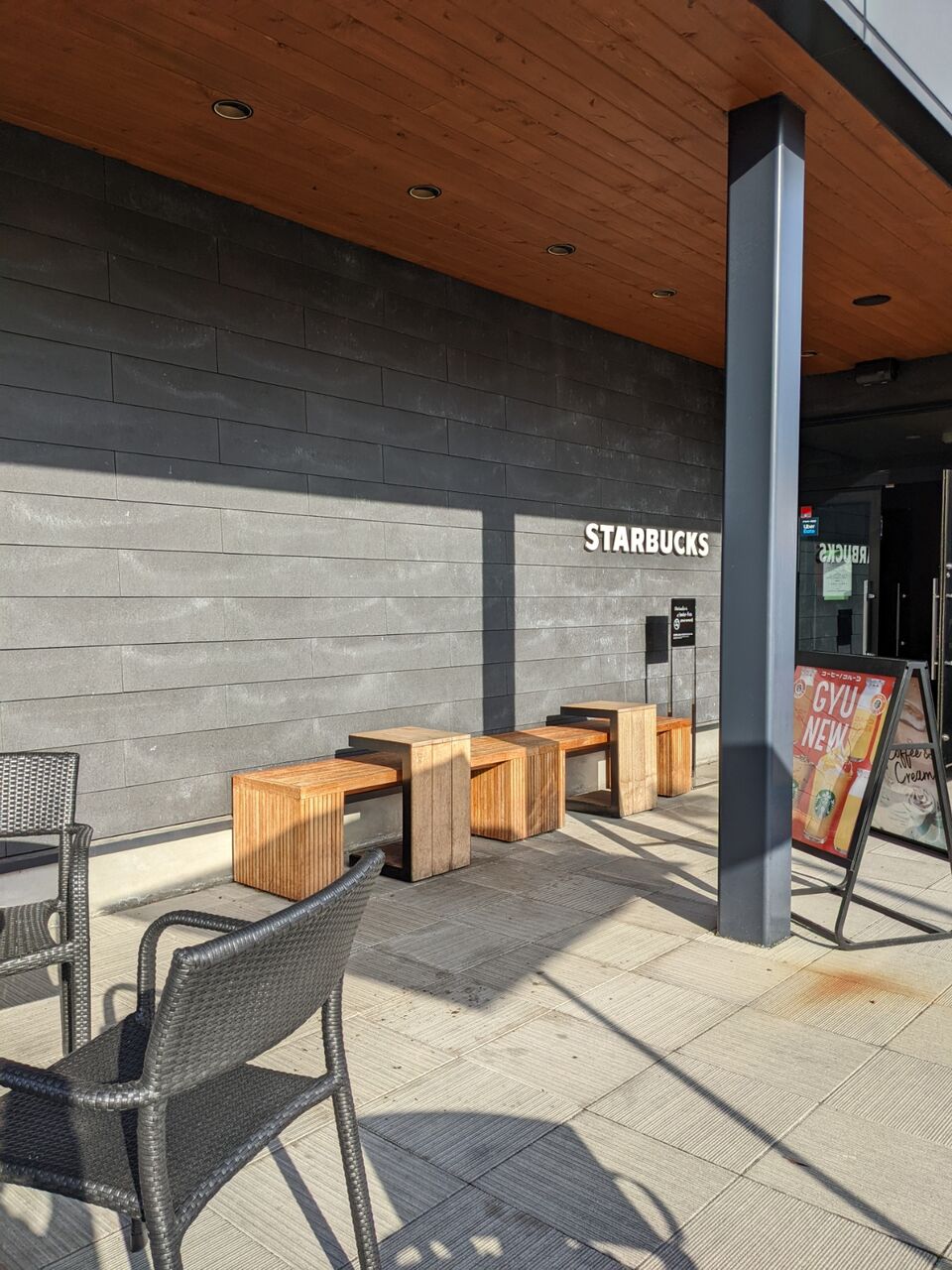 八幡のコストコの近くにあるスターバックスコーヒーに行ってきました。ここはテラス席で犬と一緒に過ごせたり、ドライブスルーがあったりするのでよく来ます。