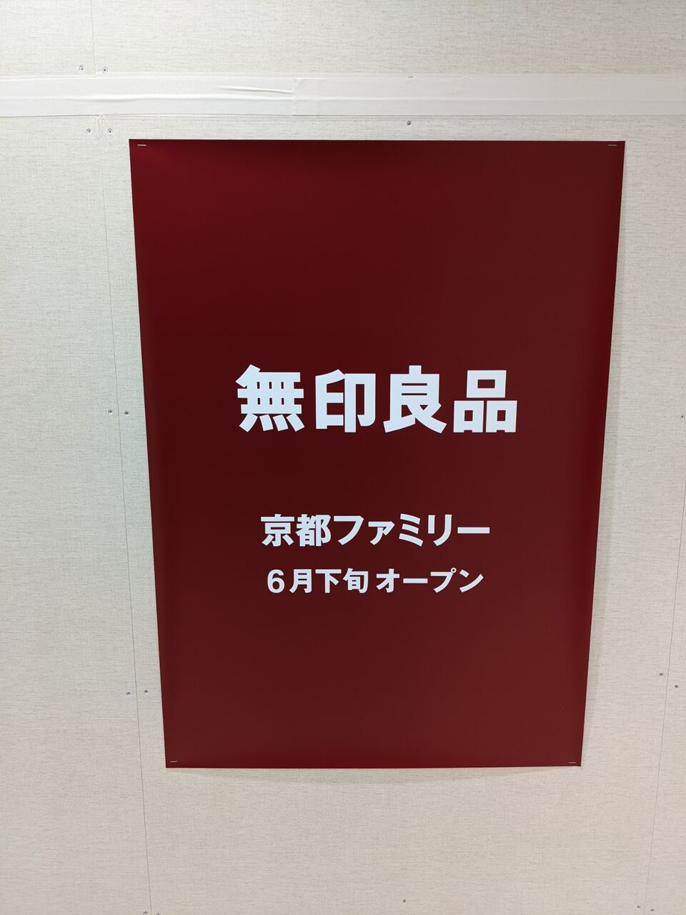 ・2022年3月29日に京都ファミリーに行ってみたところ、6月下旬に【無印良品】がオープンすると貼紙がありました。