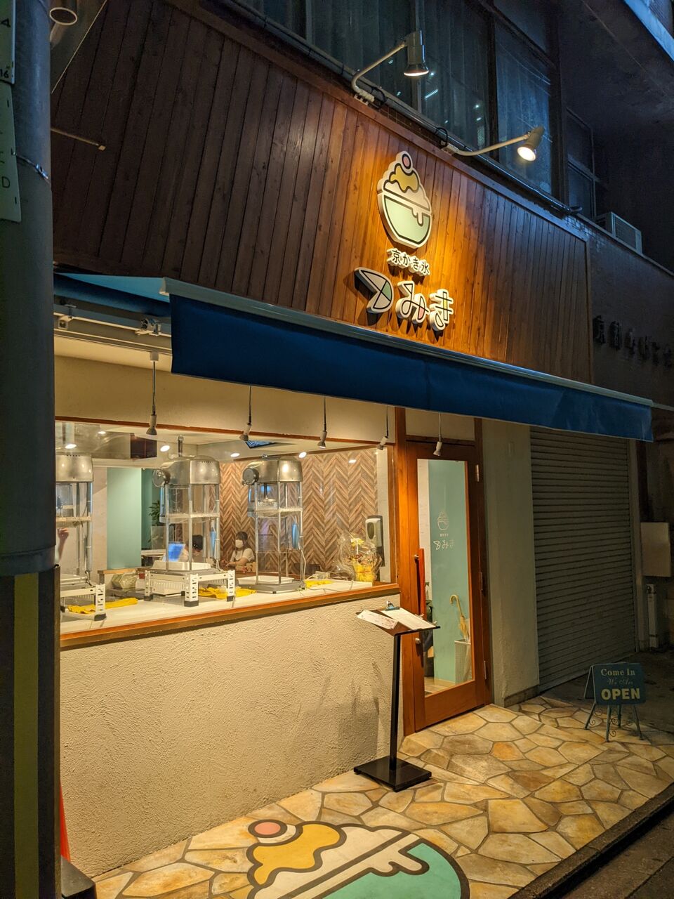 この店は21時まで営業しているというのはチェックしていたので、四条烏丸で食事をした帰りの19時頃に行ってみたら空いていたので念願の「京かき氷 つみき」のかき氷を食べてきました。