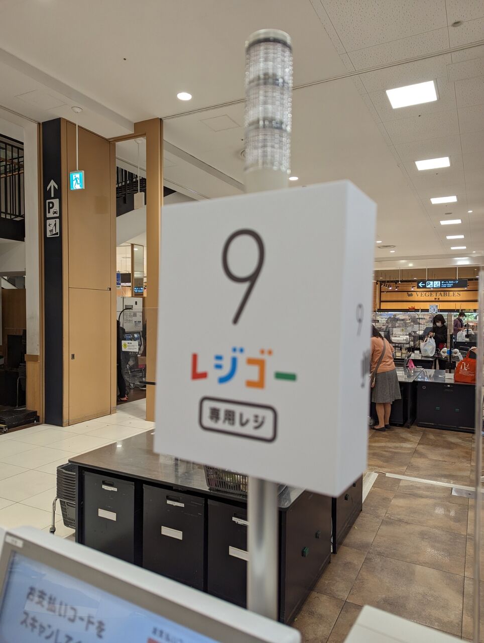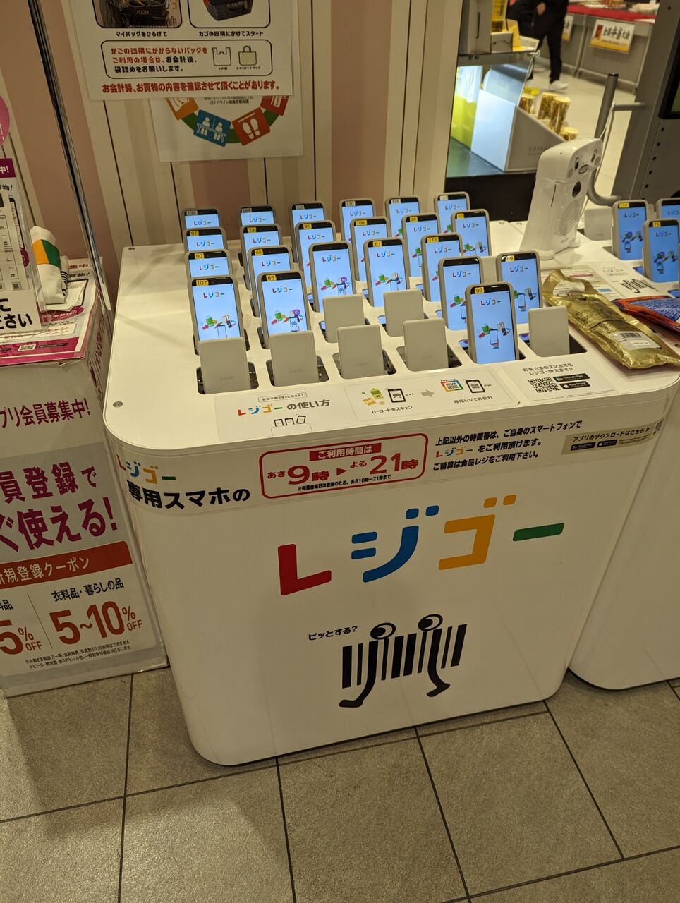 ・スーパーの入口にレジゴーの端末が置いてありました。