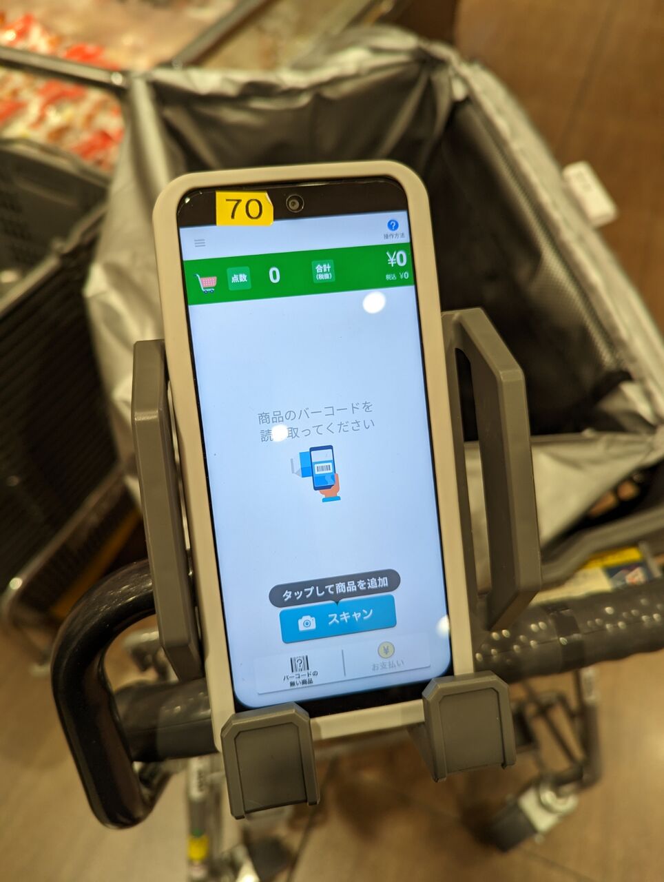 イオンモール桂川のスーパーに、買い物しながらバーコードスキャンして会計をスムーズにする【レジゴー】が導入されていた。京都ではここだけ。 pic.twitter.com/L7W5V98kSG