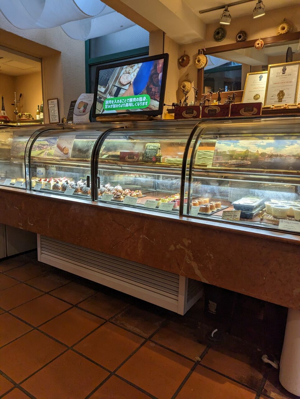 ・レストランの入口ではケーキを販売しています。順番待ちしている時にずっとケーキを眺めているとケーキも食べて帰りたくなります。
