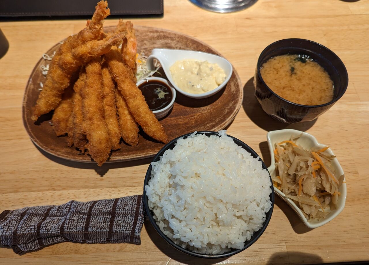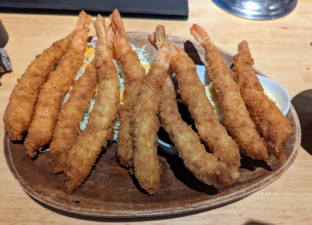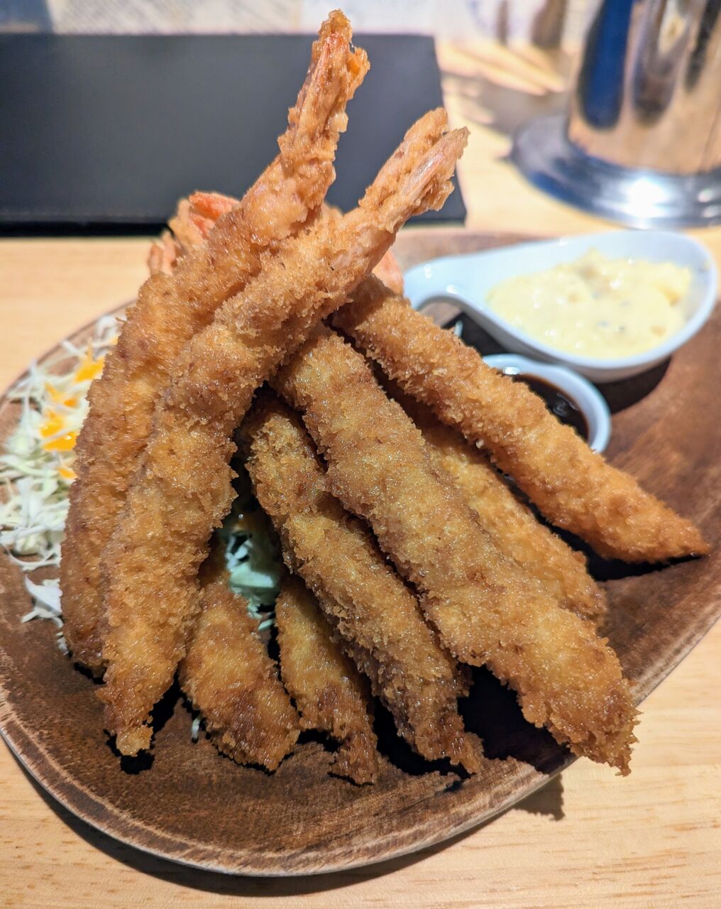 ・海老フライが山盛りになって出てきました。揚げたてでした。