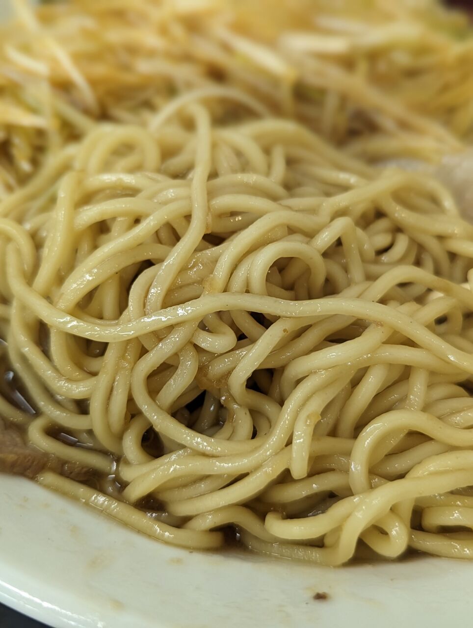 ・中太ストレート麺です。もっちりして柔らかい麺で量もしっかり入っていました。