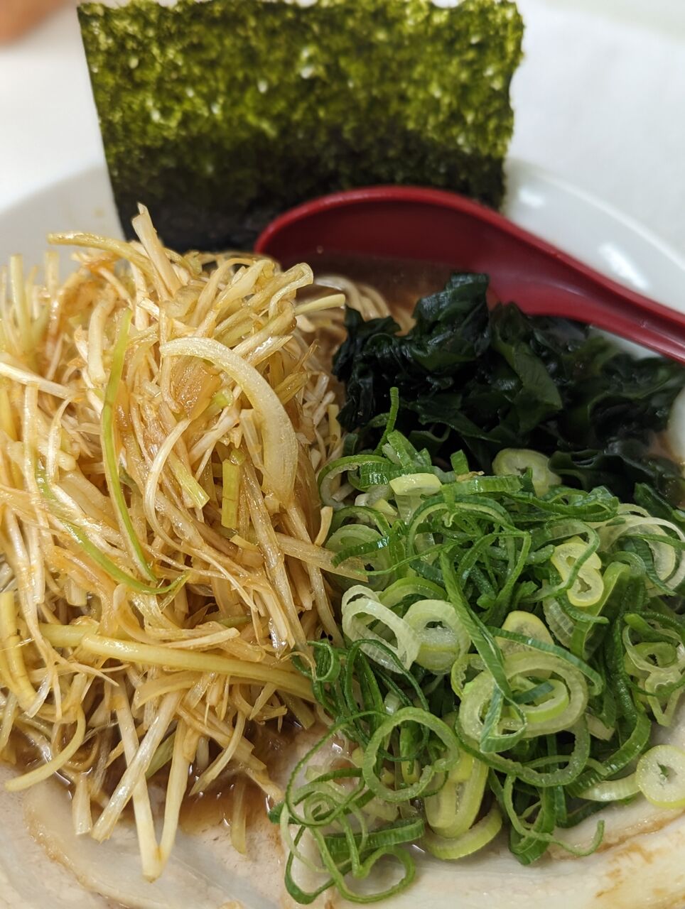 濃いめの醤油らーめんに、シャキシャキねぎが良く合います😊