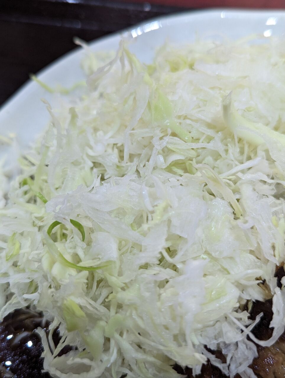 ・山盛りのキャベツがシャキシャキで何もつけなくてもモリモリ食べれるくらいおいしかったです。