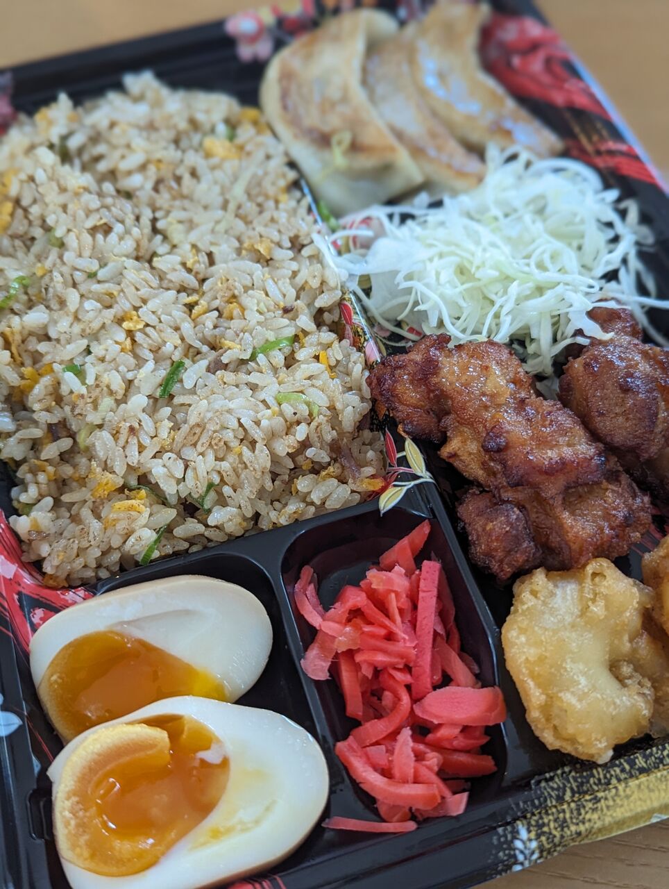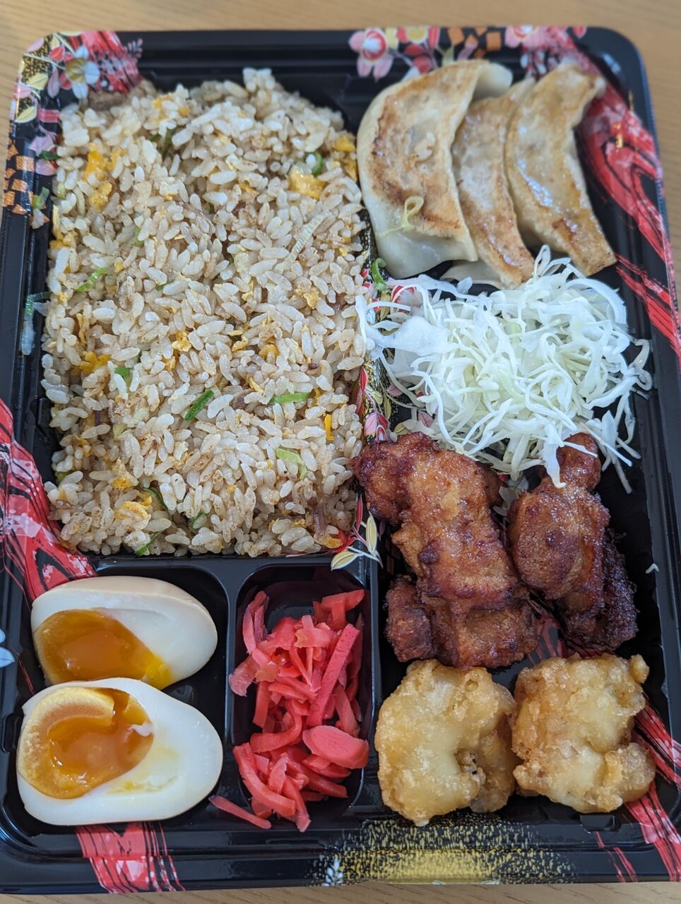 ・たかばし弁当は、まずたかばしラーメンのチャーハンがうまいのは確定している事と紅生姜がしっかり入っている事もよかったです。味玉子がラーメンに入ってる物と同じだったのでただの茹で玉子よりも数倍うまかったです。あとはおかずもレベルは高かったですが、油分も揚げ物系も多めなので後半少し飽きが来る感じはありました。
