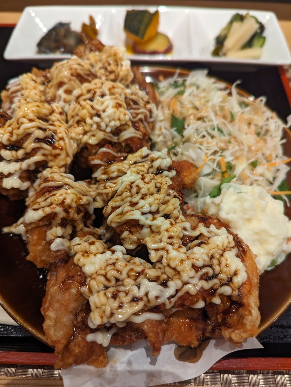 ・唐揚げが8個ですごいボリュームありました。しかも、タレマヨネーズ味でこってりしているので満腹感がすごかったです。