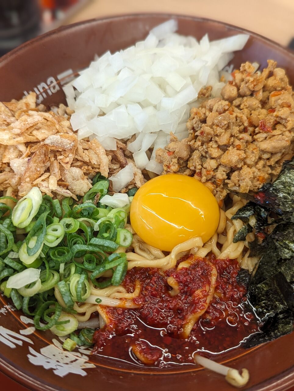 ・思っていたよりも本格的で独特の味のあるまぜそばでした。多量の生タマネギの風味がよかったです。