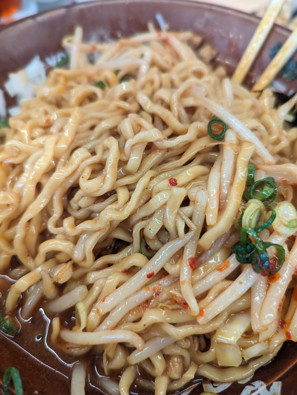 横綱ラーメン来てまぜそば注文してみた🍜ネギたっぷり入れて最後に白ごはんぶち込む🤛 pic.twitter.com/I0ClvpGZqb