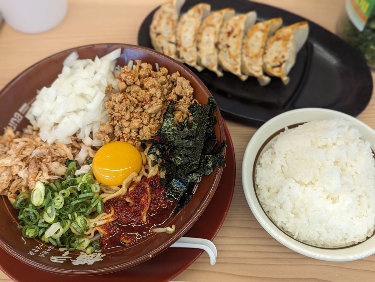 ・まぜそばでもネギは重要でした。また、辛さの追加にニントンも役に立ちました。