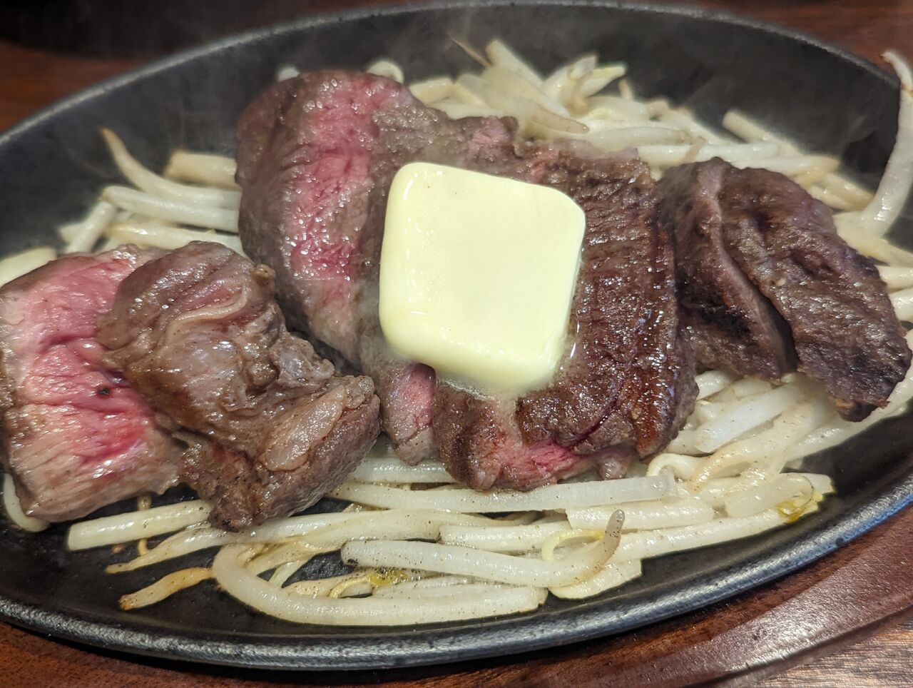 ・熱々の鉄板でジュウジュウ湯気が出た状態でやってきます。