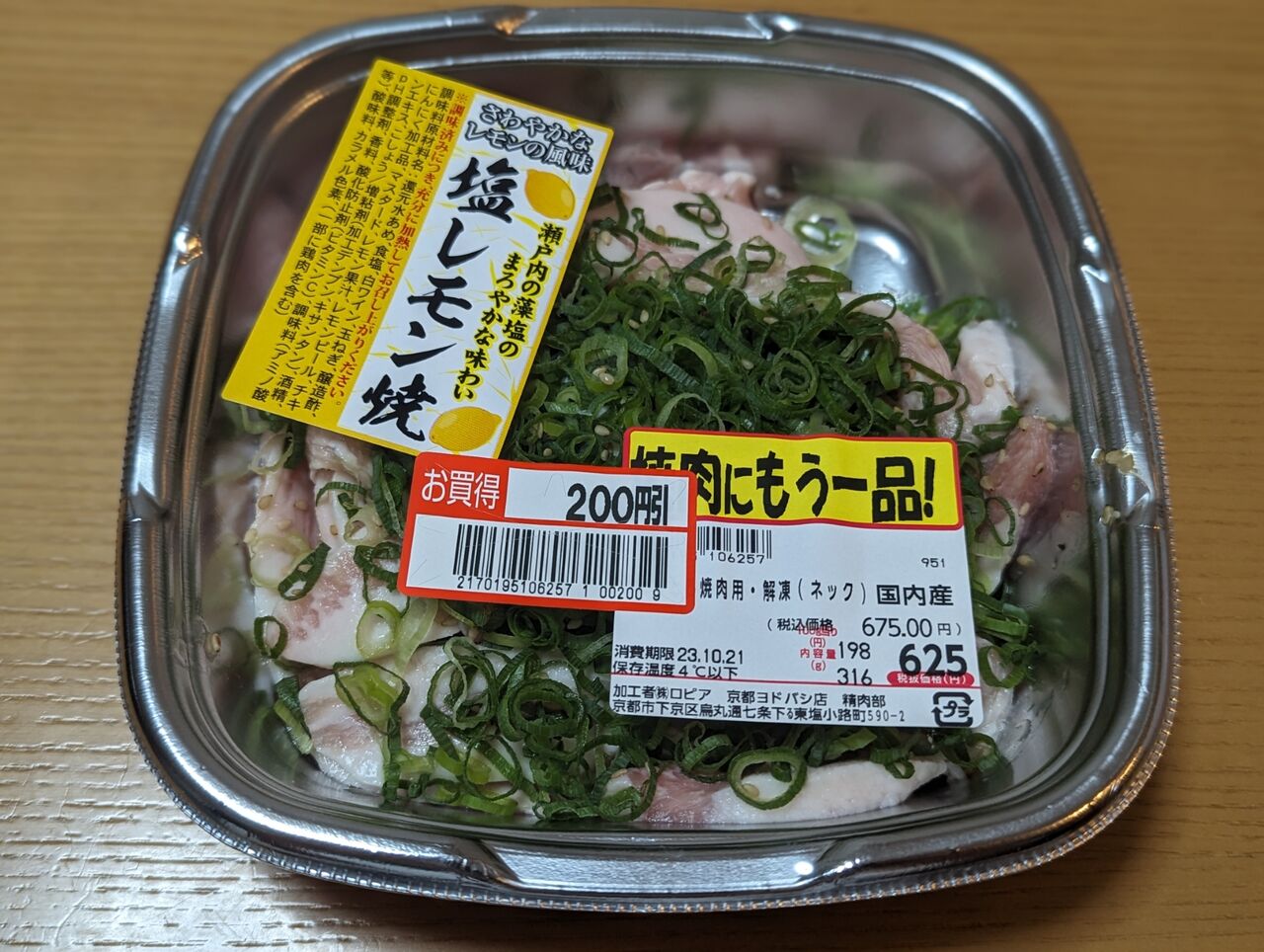 ・豚トロの塩レモン焼(316g) 425円(税別)「割引後」