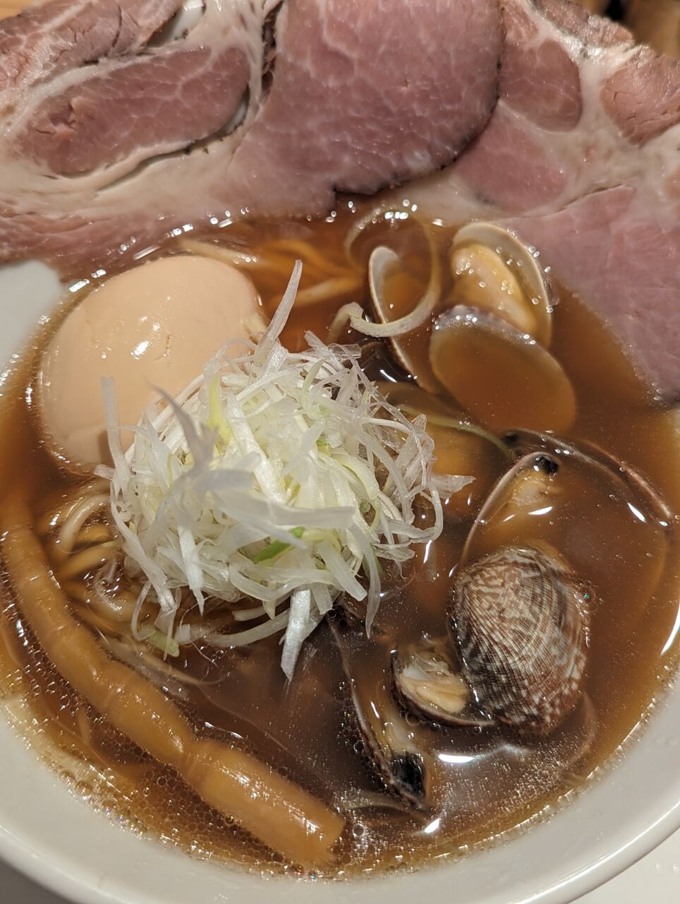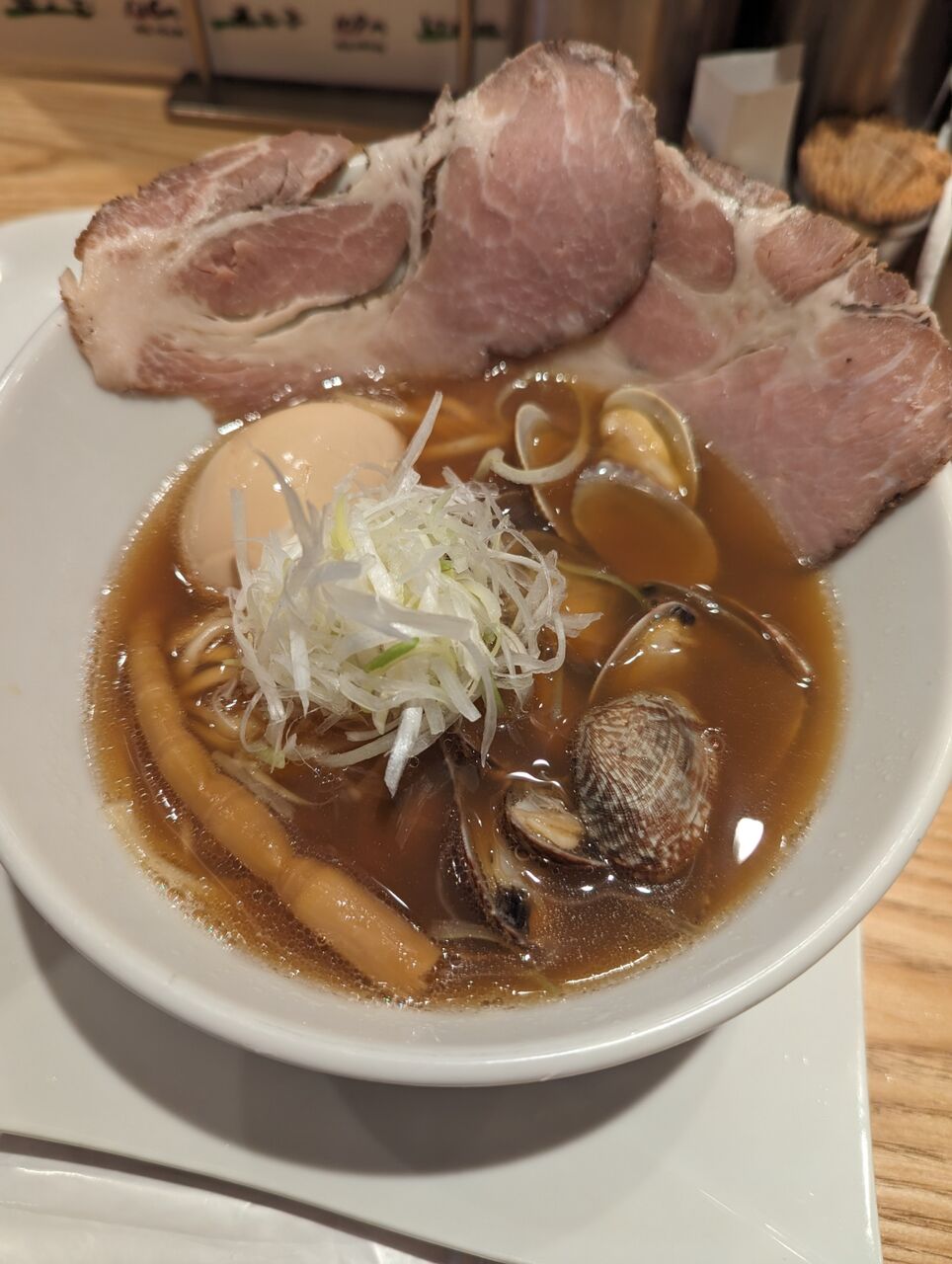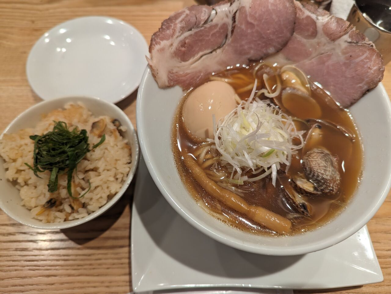 あさりラーメン(煮玉子トッピング)、貝めし 1360円