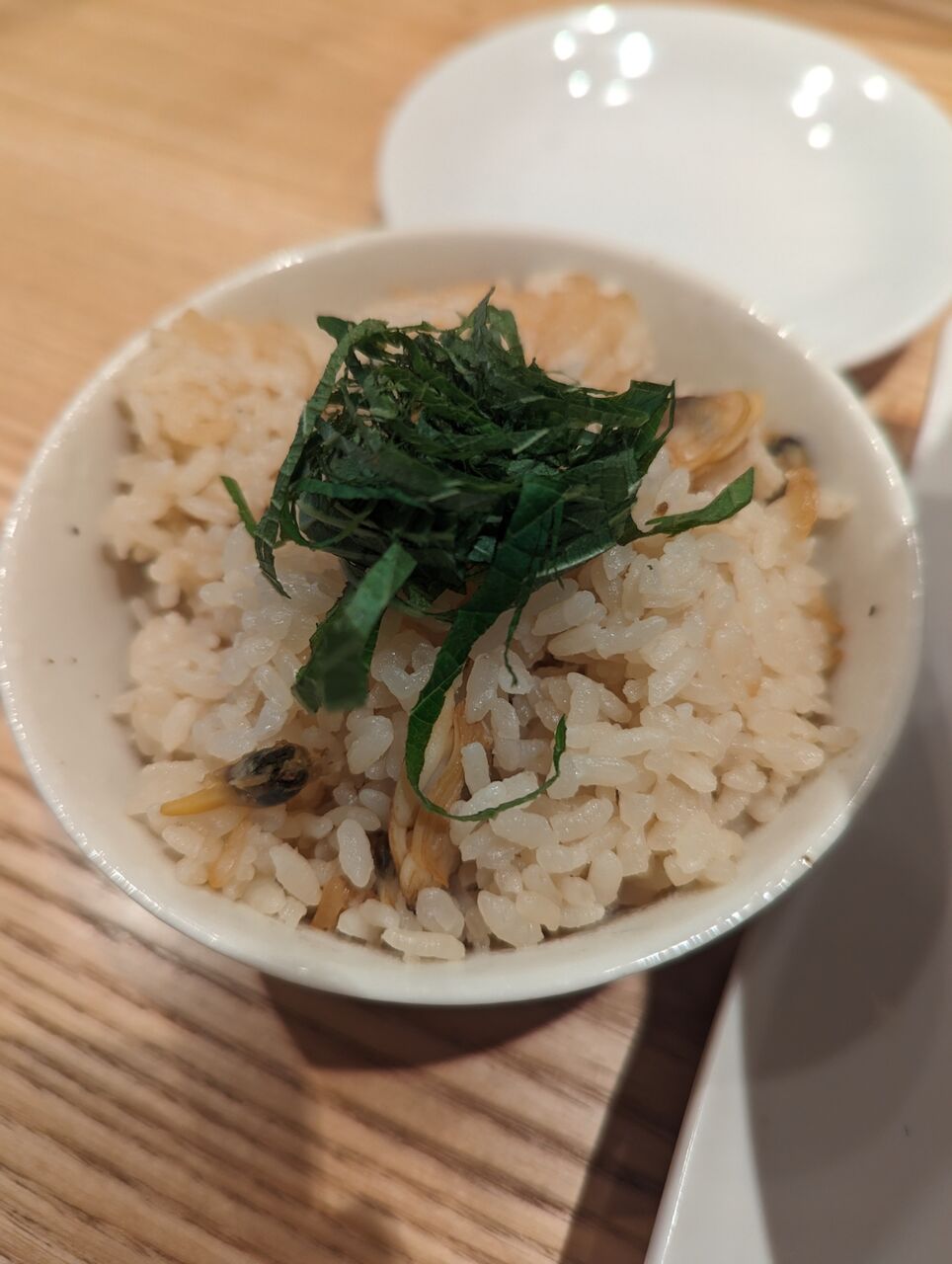 ・ラーメンスープが濃いめなので、貝めしも注文してみました。大葉が効いてておいしかったです。