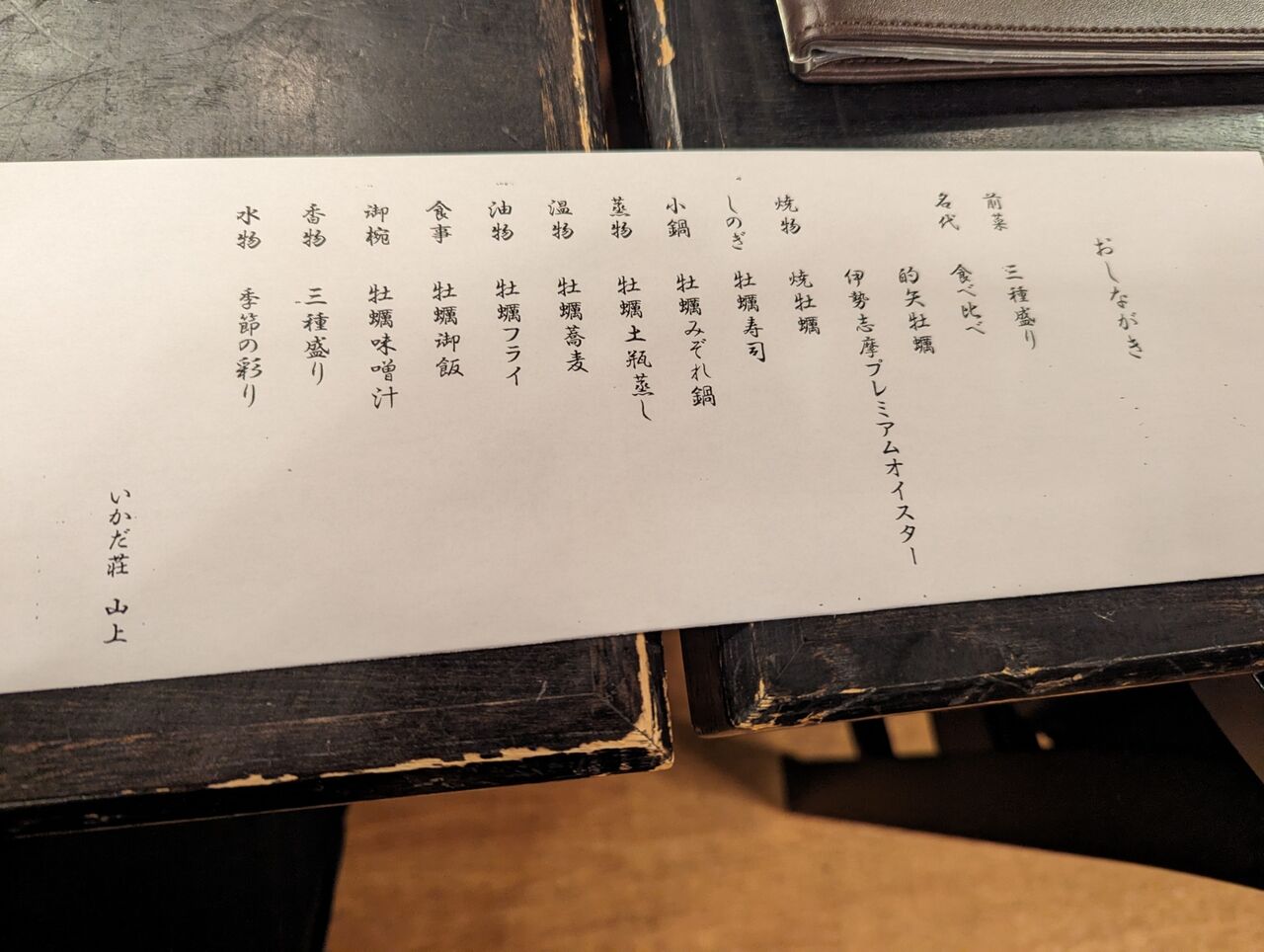 伊勢志摩旅行の夕食はどこかでおいしい物を食べたかったので、ホテルの宿泊プランは朝食のみにしておきました。そして、志摩市で牡蠣料理が評判の「いかだ荘山上」という料理旅館で食事のみ予約して行ってきました。