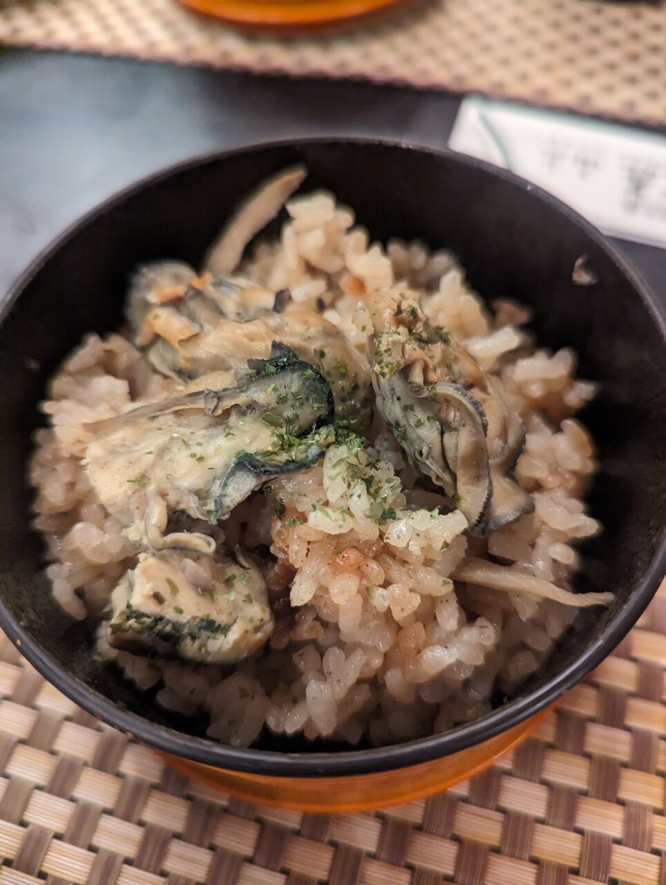 ・牡蠣がゴロゴロ入ったぜいたくな炊き込みご飯でした。