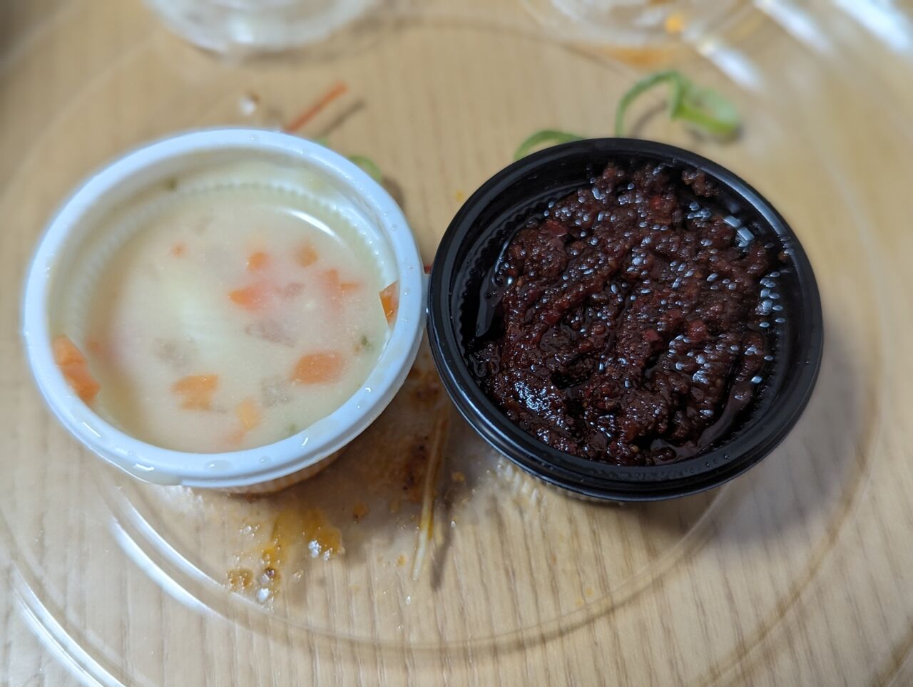ここの汁無し担々麺は本当に国内トップクラスにうまいと思う。辛さだけじゃないスパイスのバランスが絶妙なんだよ。食べるお酢(白い方)と食べるラー油が本当にうまい。食べるラー油にはエビが入っててもはやエンドレス。今日は〆ご飯セットではなく追い飯にしたが大正解腹パン。 pic.twitter.com/rO8WOqwJiy