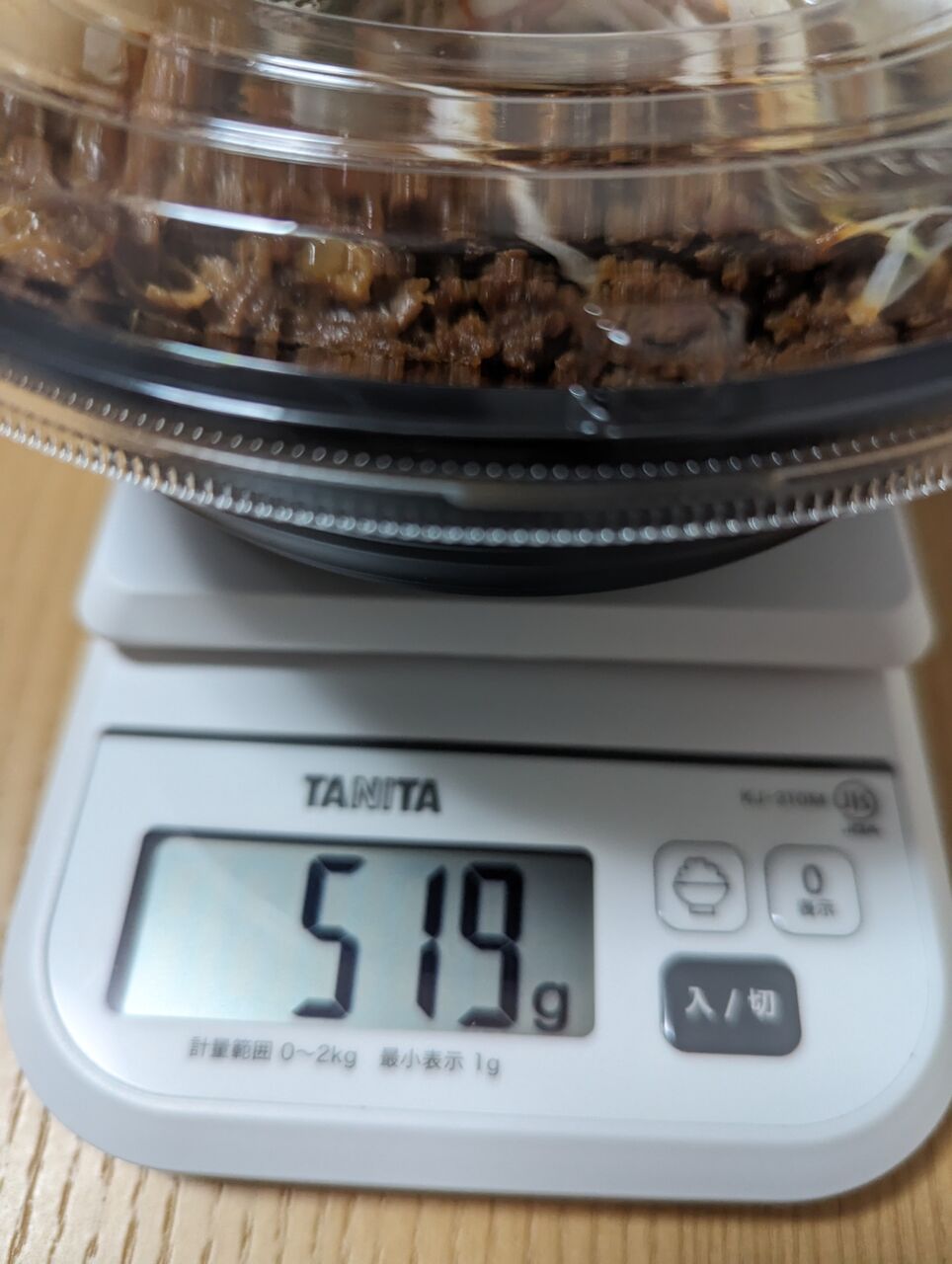 ・普通盛と大盛で300g近く差がありました。大盛は2人前ぐらいありました。
