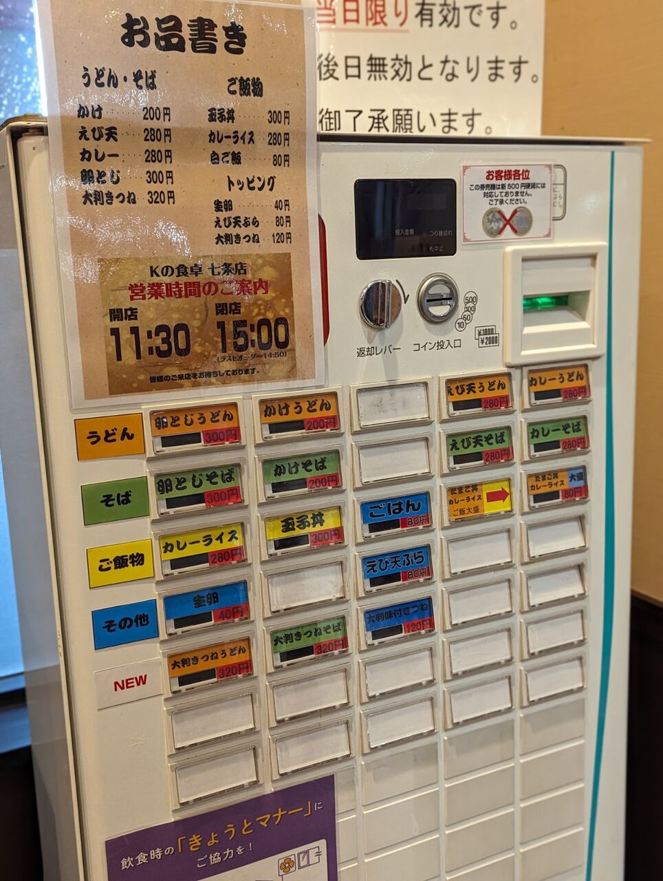 ・券売機による事前食券購入方式で、現金のみでした。