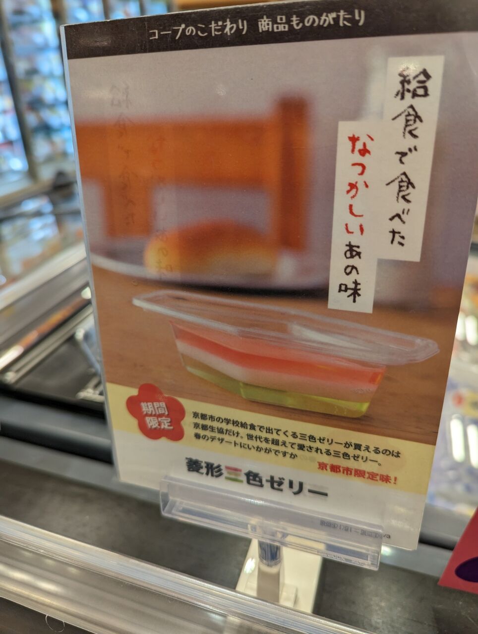 京都生協で三色ゼリー購入。小学校の学校給食以来、約30年ぶりに食べるどす。#三色ゼリー#京都あるある pic.twitter.com/4sXZEeuOEX