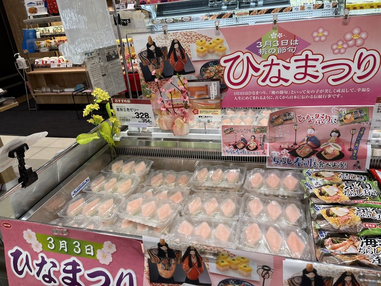 京都生協では例年この時期限定で、「三色ゼリー」を取り扱っているそうです。お近くの京都生協の冷凍食品コーナーで探してみてください。