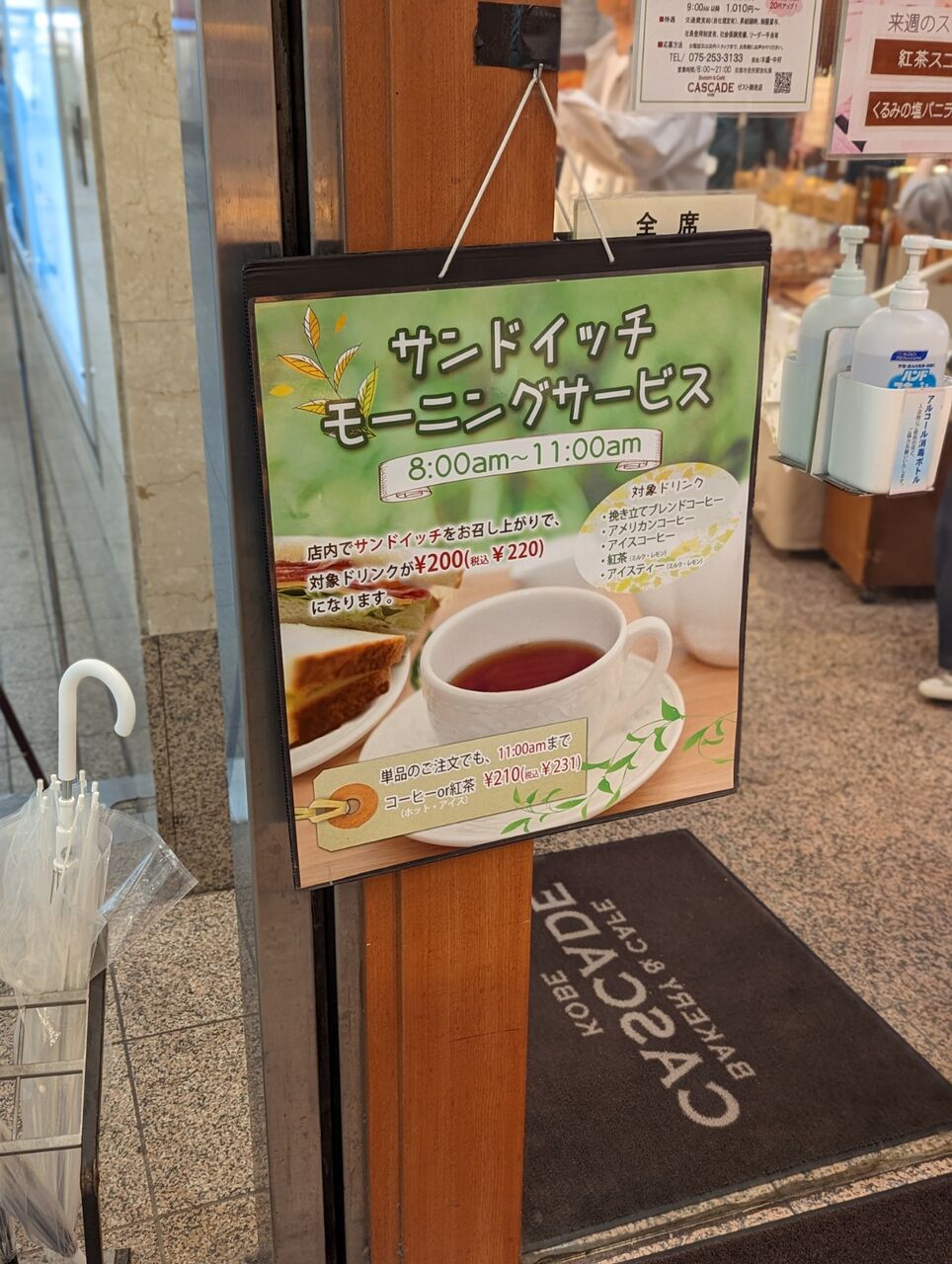 京都市役所に用事があったので「ゼスト御池」にあるベーカリー【CASCADE(カスケード)】のイートインコーナーでモーニングを食べてきました。