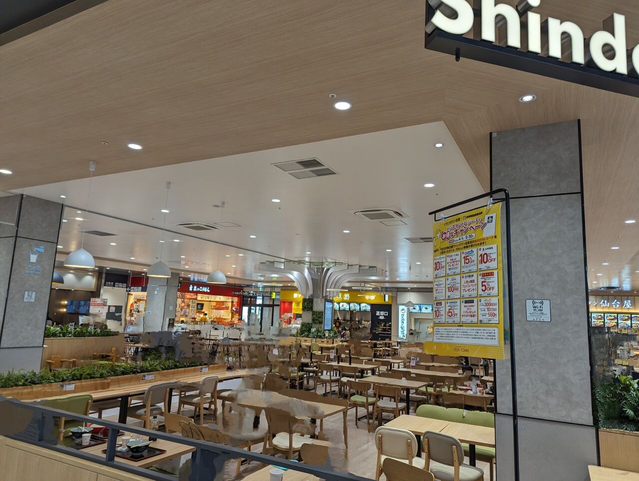 ・食事はイオンタウン内のフードコートか、敷地内別棟の飲食店があります。