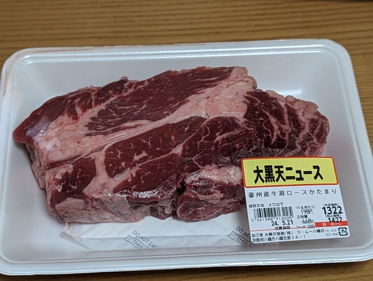 ・豪州産牛肩ロースかたまり「668g」 1322円(100gあたり198円)