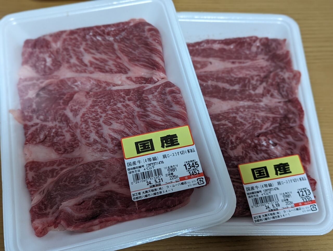 ・4等級国産牛肩ロースうす切り「428g」 2762円(100gあたり598円)