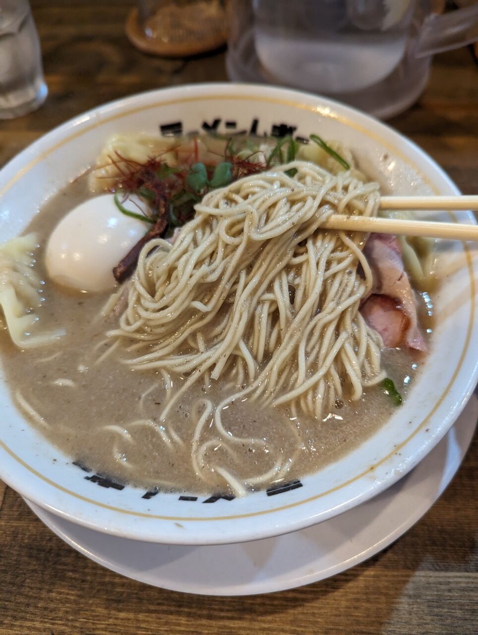 ・健康に配慮して麺増量よりもタンパク質重視で「ワンタンと煮卵」を選びました。