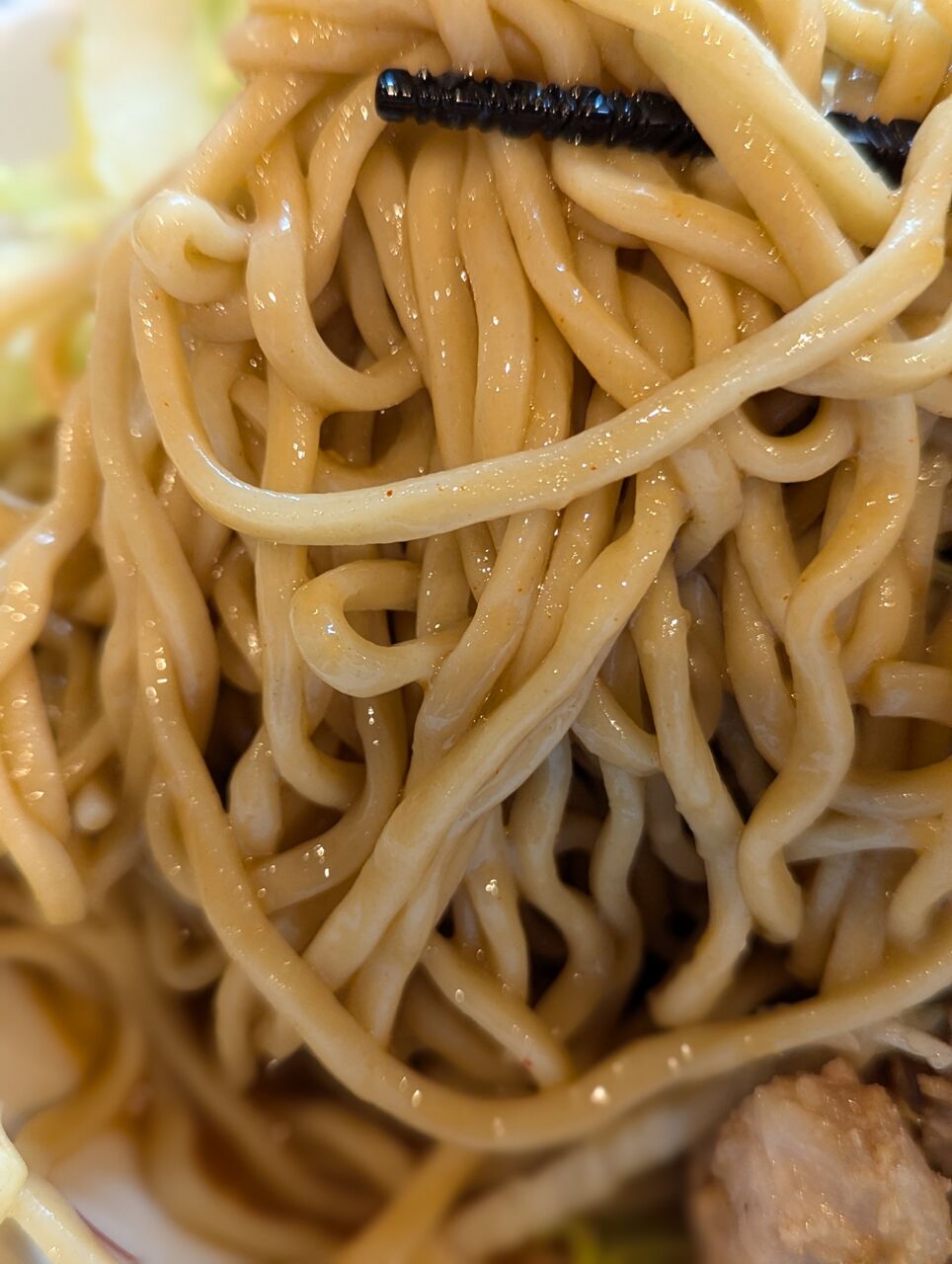 ・太くてコシの強いストレート麺で非常においしかったです。もっと食べれそうでした。