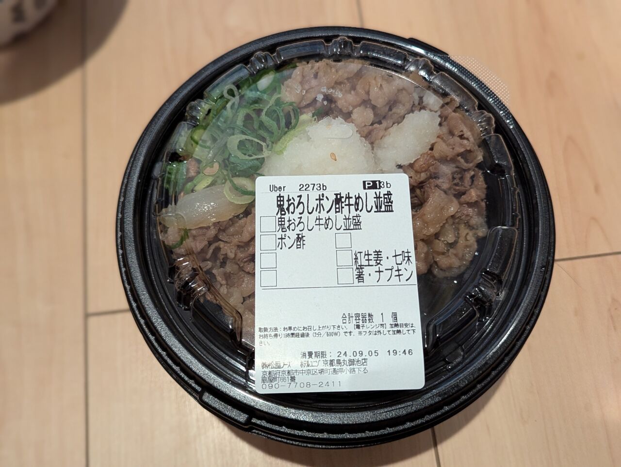 「UberOne」会員限定特典で店舗限定「50%オフ」が実施されていたので利用しました。今回は「松屋ホテルユニゾ京都烏丸御池店」で注文することにしました。限定5種の牛めしや丼が半額になっていました。