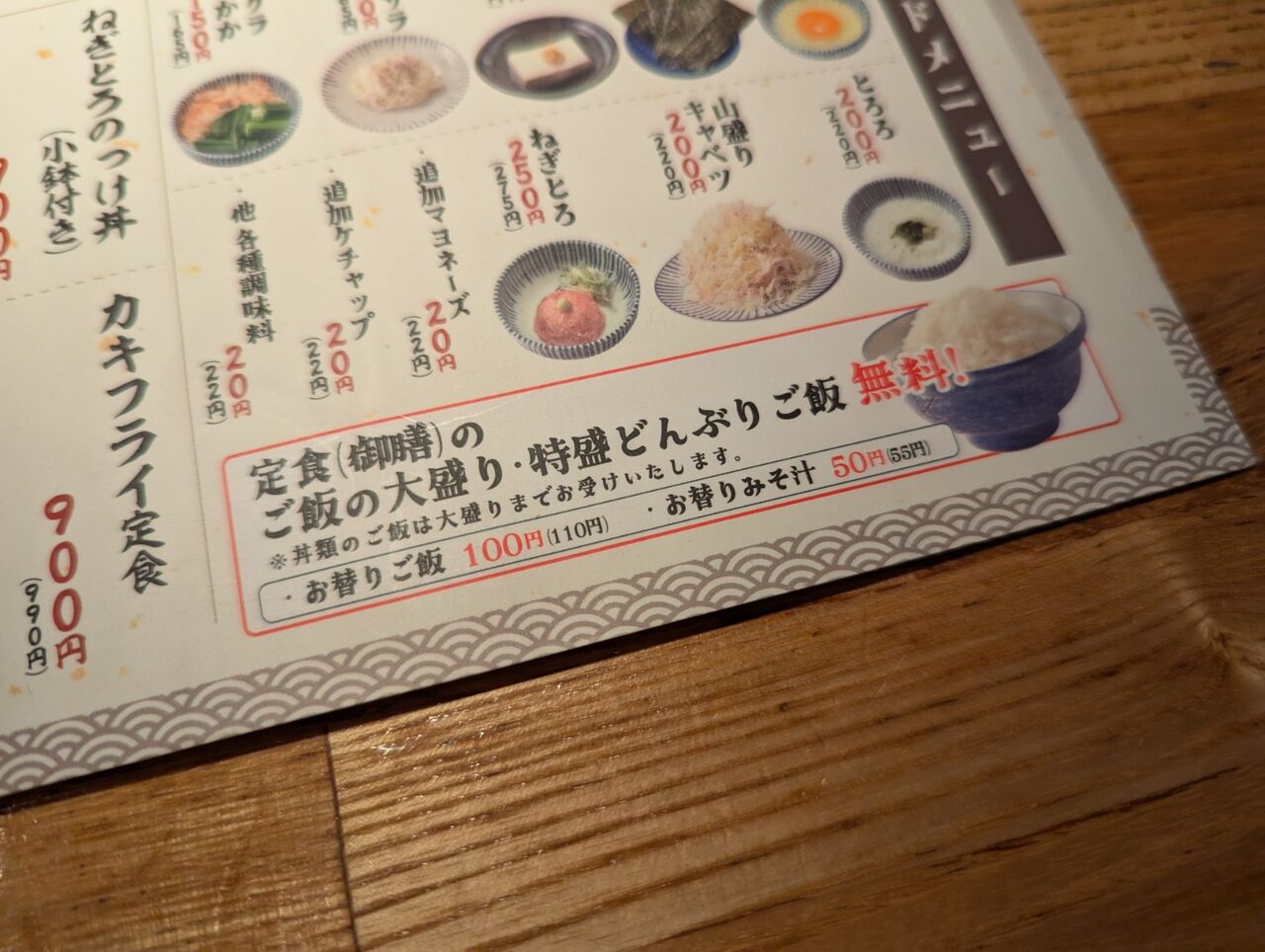 ・ランチ定食のご飯は、大盛、特盛が無料でした。(お代わりは有料)