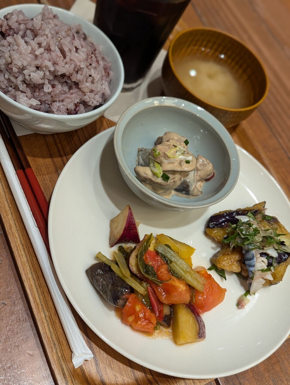 ・ヘルシーだけど味付けはしっかりしていておいしいランチでした。ご飯だけ別で注文できたので子供の食事に助かりました。