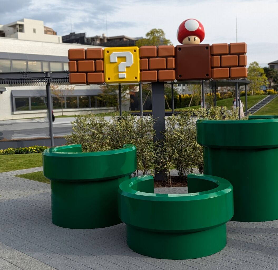 ・傘立てや自販機、マンホールまでニンテンドウデザインでした。