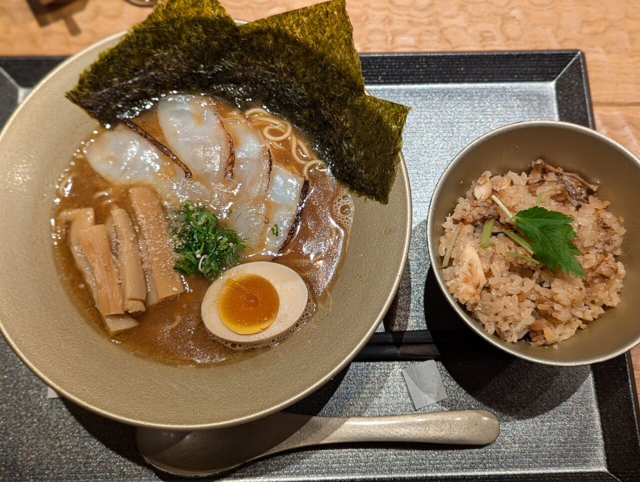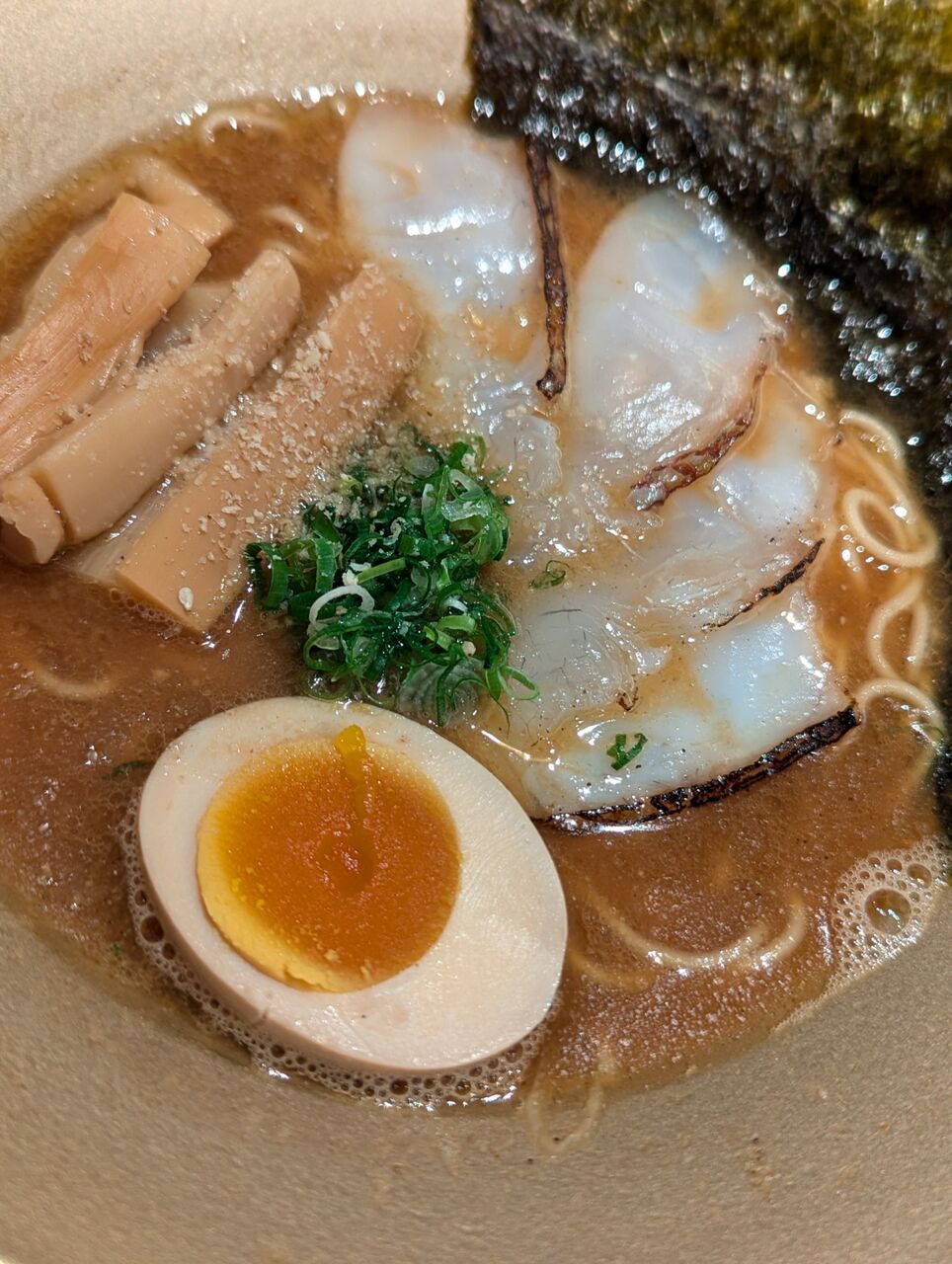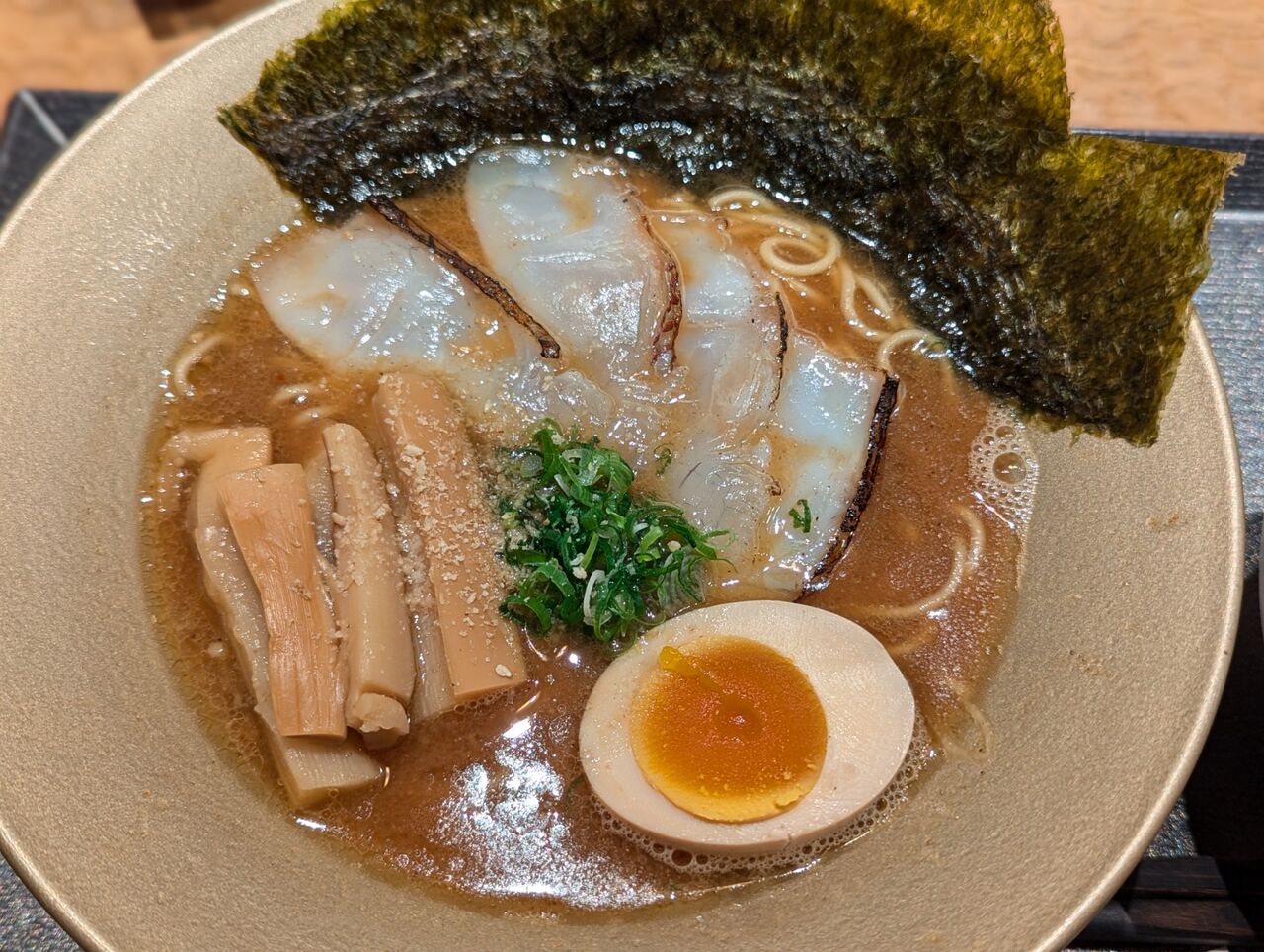 ・チャーシューの代わりに炙った鯛の刺身が乗っていました魚介風味がしっかりついた和風ラーメンでした。
