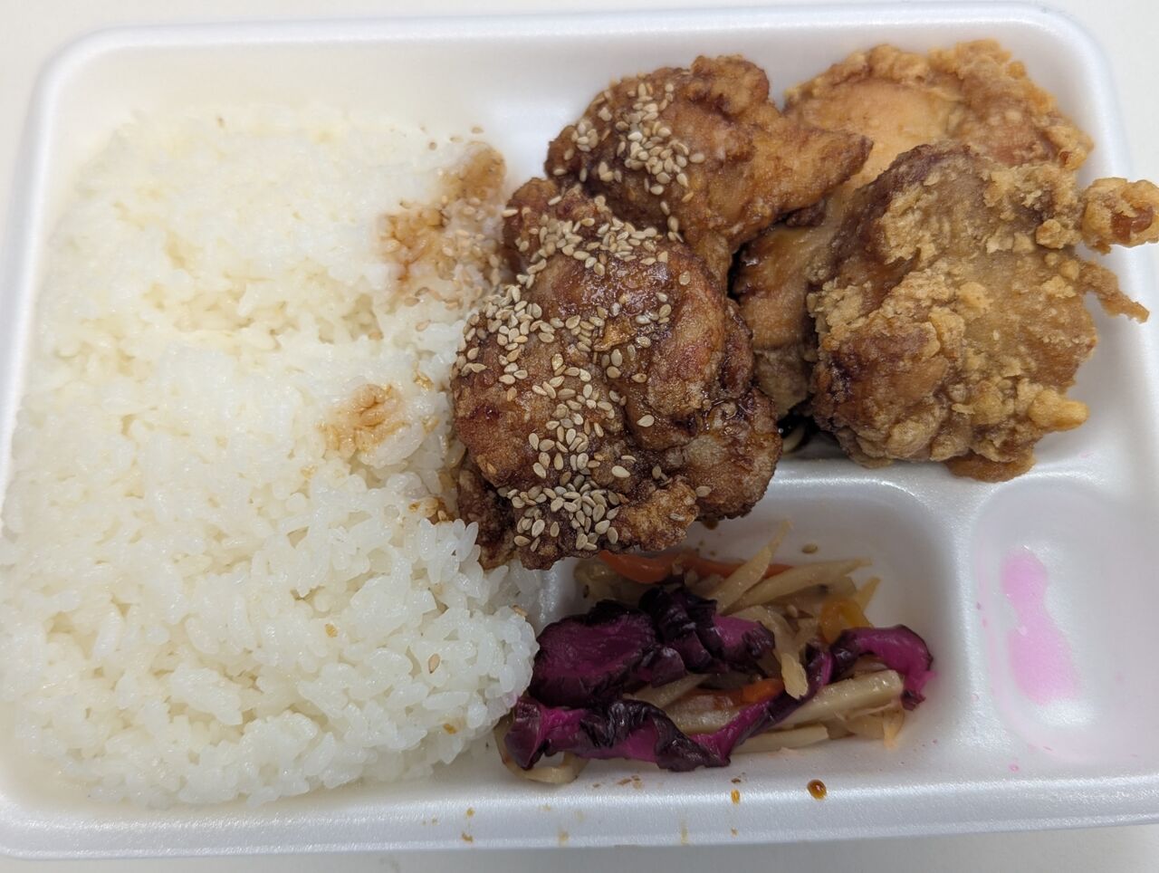 ・割引もあったので配達してもらっての1137円はなかなかリーズナブルでしたが、唐揚げがドでかいという事もなく重量的にもまあまあ普通のから揚げ弁当でした。