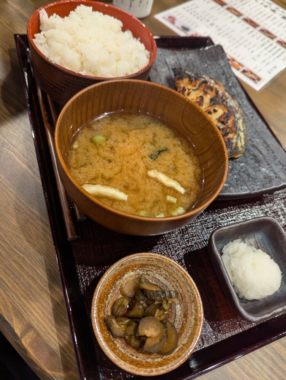 ・炭火でよく焼いたずっしり分厚い西京焼きでした。そのままでもおいしいですが大根おろしと醤油でも楽しめます。揚げ物やカレーもありましたが、炭火焼で焼いた焼魚と生姜焼(豚、鶏)が看板メニューのようです。