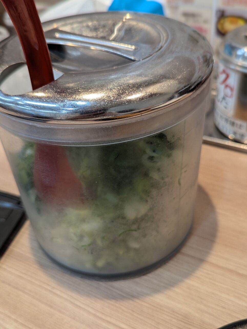 【ラーメン横綱吉祥院本店】で「国産ネギ」と「自家製ニントン」をいっぱい入れてきた