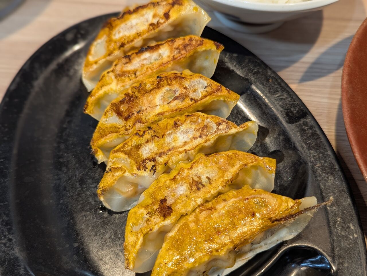 ・ライス小と餃子をセットで注文しました。餃子はそれほどニンニク臭くなくてスタンダードな味わいでした。