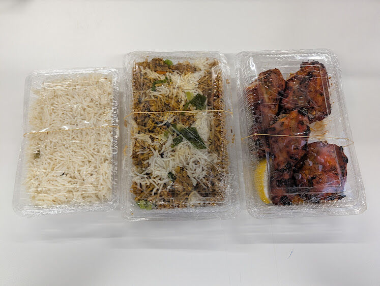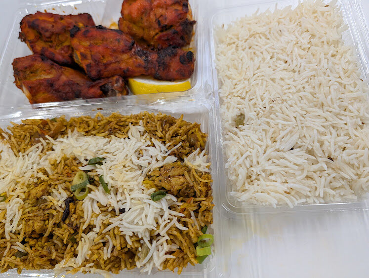 チキンビリヤニ(中辛)、バスマティライス、タンドリーチキン4ピース 3465円(配送料等含む)