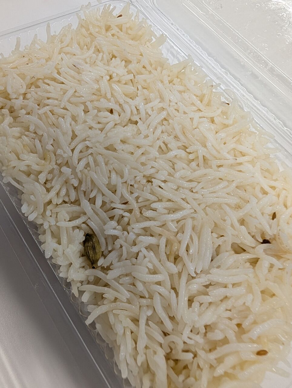 ・ビリヤニが結構味が濃いのでいつもバスマティライス(長粒種のご飯)を注文します。300gほどで650円なので、グラム換算するとビリヤニとほとんど変わらないですね。