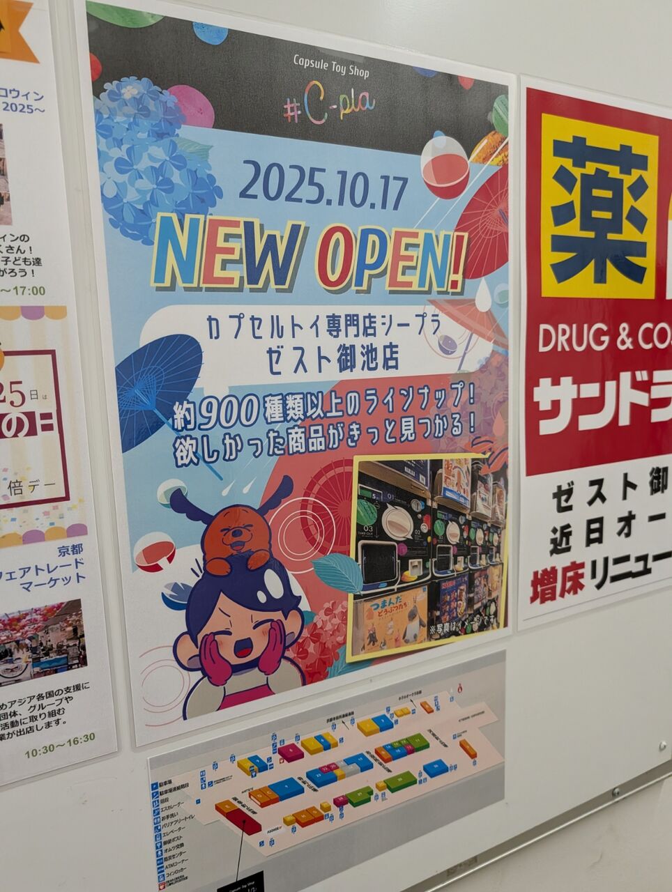 「ゼスト御池」にガチャガチャ専門店【#C-pla(シープラ)】がオープン 2025年11月01日 ゼスト御池地下街の西の端(元市役所の証明書発行コーナーがあった区画)にガチャガチャ専門店【#C-pla(シープラ)】ができていました。2025年10月17日オープンとのこと。店内はかなり広くて900台以上のガチャガチャが設置してありました。寺町通や河原町通にも【#C-pla(シープラ)】はありますが、繁華街の人混みを考えるとゼスト御池の方が比較的空いているのでいいなとおもいました。◆お店の情報#C-pla(シープラ) ゼスト御池店京都市中京区御池通寺町東入下本能寺前町492-1 ゼスト御池地下街▼公式サイト 「◆書籍・ゲーム・おもちゃ」カテゴリの最新記事 「◇開店・閉店情報」カテゴリの最新記事 タグ :#中京区 < 前の記事次の記事 > コメント コメントフォーム 名前 コメント 記事の評価 リセット リセット 顔 星 情報を記憶 コメントを投稿する