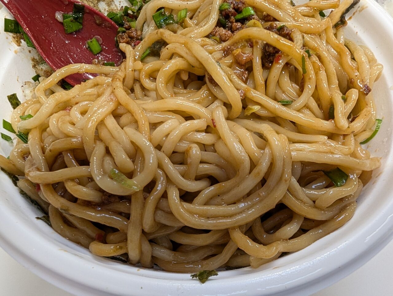 ・まぜそばなのでしっかりと混ぜてから食べます。モチっとして少し柔らかめの麺でした。配達に結構時間がかかっていたので若干伸びたようにも思います。お店で食べたらまた違うのかもしれません。