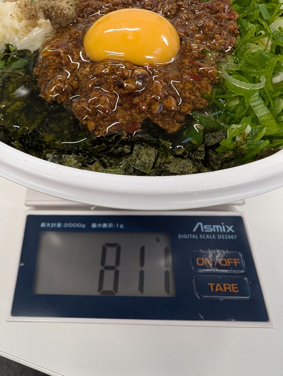 ・具材はニラ、ネギ、海苔、ニンニク、魚粉とベーシックなものでしたがバランスが良くておいしかったです。特盛にしてもペロリと完食でした。800g越えの総量で食べ応えも抜群です。